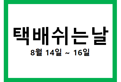 8월 14일 ~ 16일 택배기사님들이 쉬는 날로 정해져, 배송이 중단됩니다.