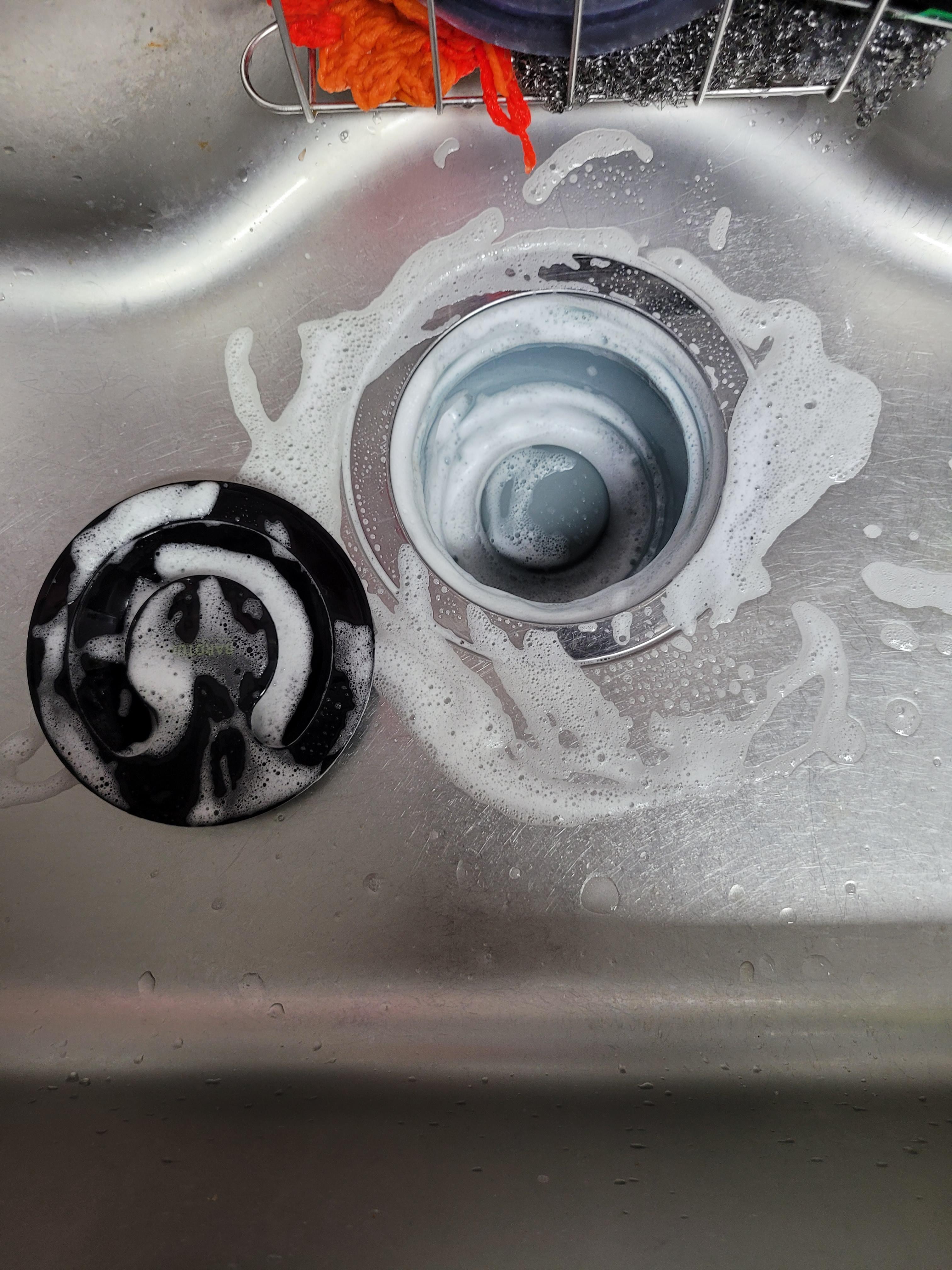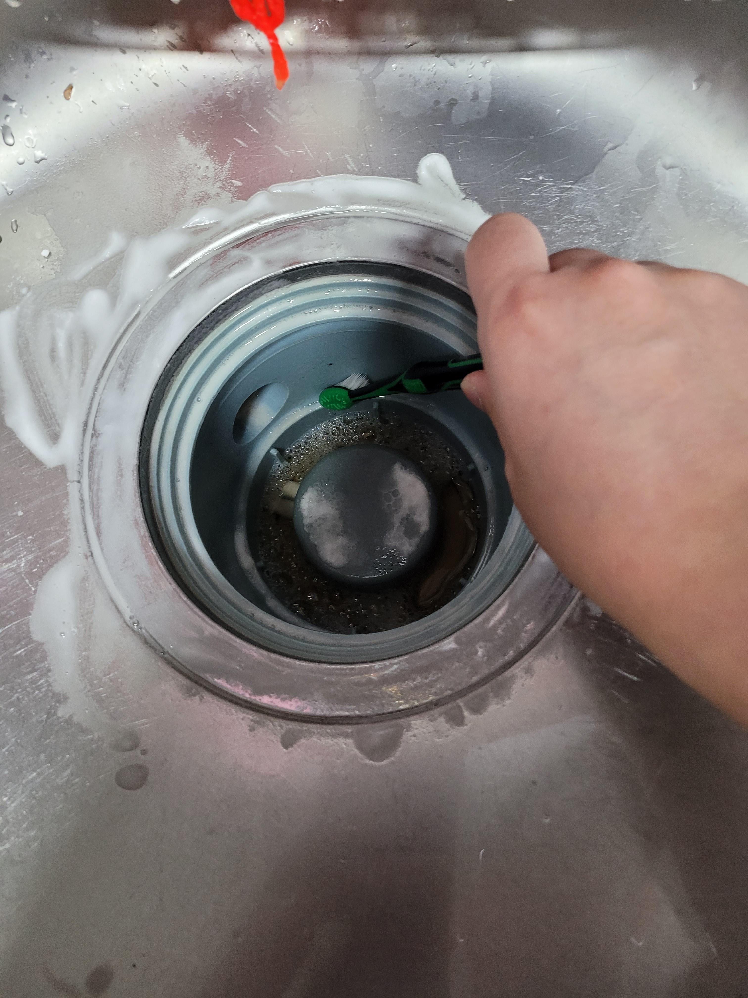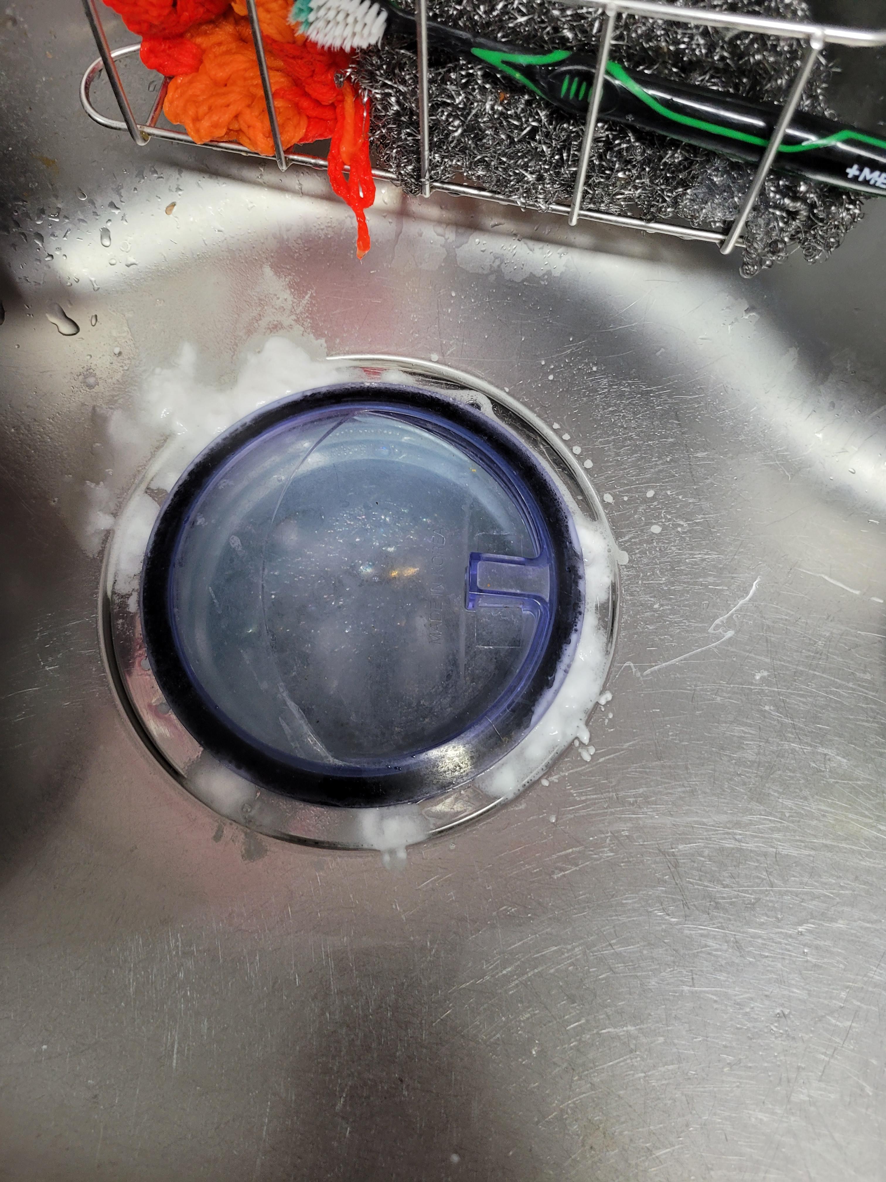 1. 주방세제를 이용해 싱크대 볼과 거름망, 배수구 뚜껑을 닦아줍니다.