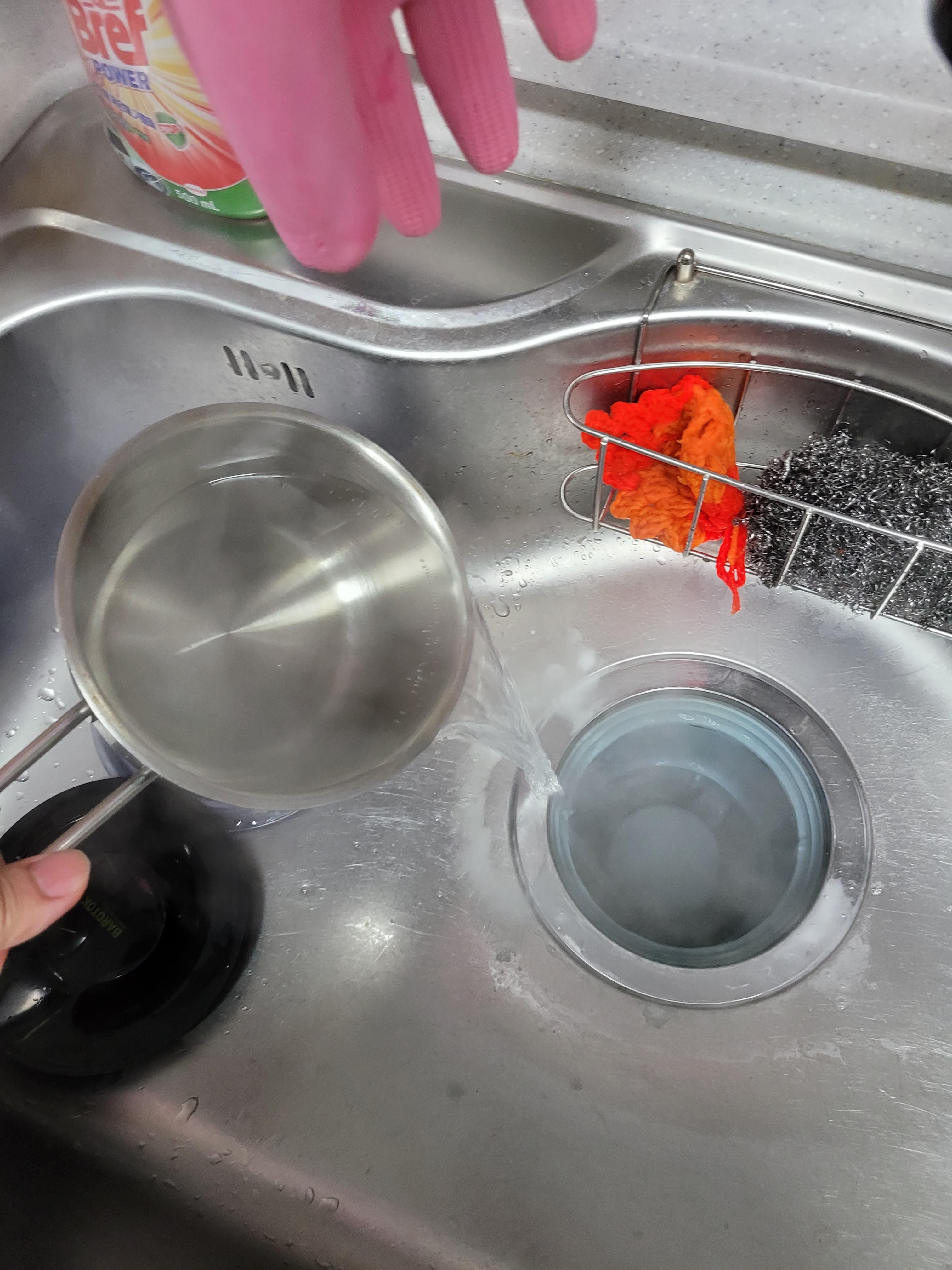 배수구를 주방세제로 좀 더 열심히 닦아도 보고