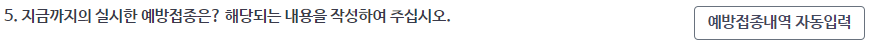 : '예방접종내역 자동입력'을 클릭하면 의료기관과 연동하여 자동으로 데이터를 불러와 입력됩니다