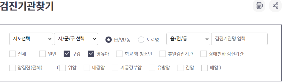 이번 검진 회차가 구강검진이었다면 '구강'을 선택 후 병원을 검색하시면 됩니다.
