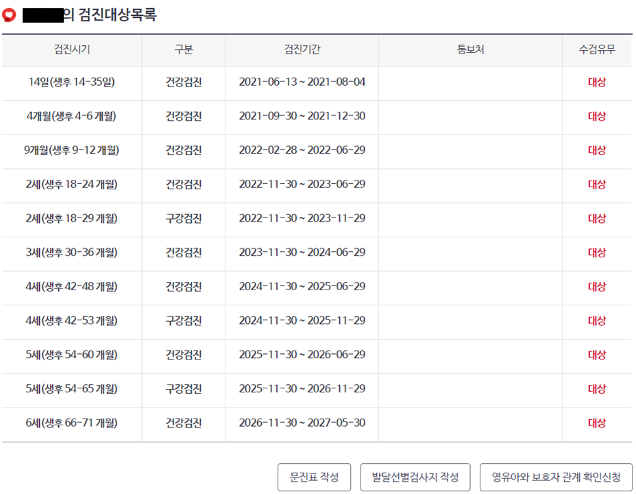 예약을 할 때에는 병원에서 아이의 이름과 생년월일을 통해 (필요할 경우 아이의 주민번호까지) 검진대상 확인을 거치고 예약을 잡아줍니다.